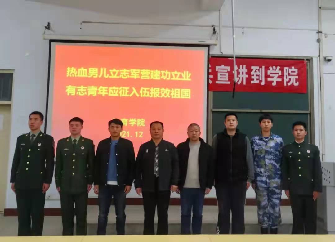 为鼓励学生积极参与应征入伍,提高兵员征集质量,推进国防和军队现代化建设,开元集团网站于12月16日晚上七点在A01-119教室隆重举行2022年度征兵宣讲活动暨2022年征兵动员大会。学院党总支书记张启中、校武装部袁伟老师、学院分团委书记聂鸣琨老师、辅导员陈启航老师,此次会议由院学生会米乐妍同学主持,由校武装部和我院退伍大学生做征兵宣讲,2020级和2021级全体同学参加会议。