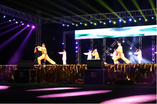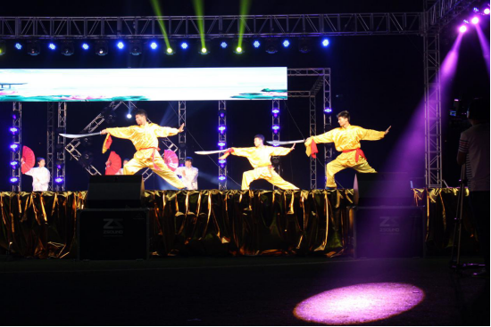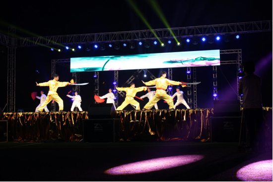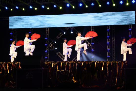 场面十分激情高昂丰富多彩。期间由体育系武术专选班全体师生在经过每日坚持训练,指导老师闫金兰、李冰、刘华精心的指导下,向同学们展示了我们体育系人的朝气蓬勃、奋发向上精神面貌。此次演出充分的体现出中华武术的博大精深,吸引了许多新生来关注武术,从而更进一步的学习武术,发扬武术精神。这次演出的成功举办凝结了体育系武术专选班老师的悉心指导、学生的辛勤付出和真情奉献。这顿丰盛的精神大餐,不仅陶冶情操、鼓舞士气、增进友谊、和谐关系,同时也激励大家不断健康成长、走向成熟。最后晚会在激情的音乐下完美谢幕。