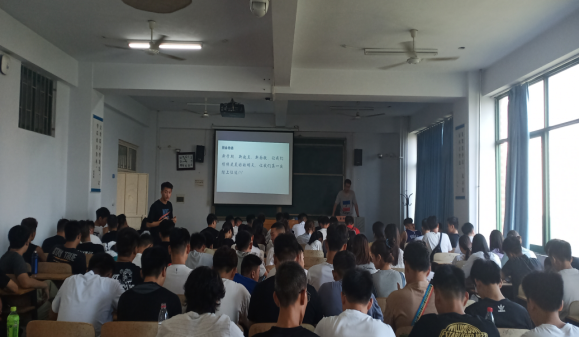 主题班会上,主要内容为疫情防控、体育健康、爱国主义等。现在国内疫情并未完全结束,每个人都有责任做好防控工作,要求每个人返校后严格消毒,特别是每日的消毒,宿舍卫生等。每位学生每日三次测量体温,实时监控体温,如有异常,及时上报。身为体育人一定要加强体育运动,以中等强度为主,以提高自身免疫力。