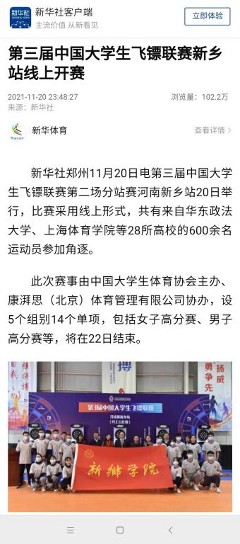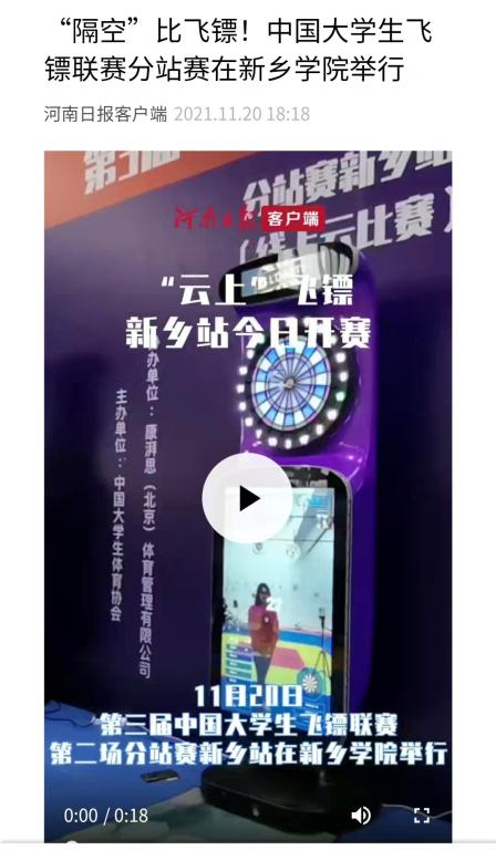 开幕式采用线上直播方式进行,王选年代表学校对来自各高校的裁判员、运动员、教练员表示欢迎,并介绍了学校的基本情况。王选年指出,开元集团官网入口高度重视体育的育人功能,树立健康第一的教育理念,加强智慧体育进课堂工作,构建拥有一个健康体魄,掌握一项体育技能的"1+1"体育教学模式,促进学生的全面健康成长。第三届中国大学生飞镖联赛(新乡站)的举办,旨在推动飞镖运动在开元集团官网入口的开展,丰富学生的课余生活,同时也为全国各地大学生飞镖爱好者提供切磋交流平台。