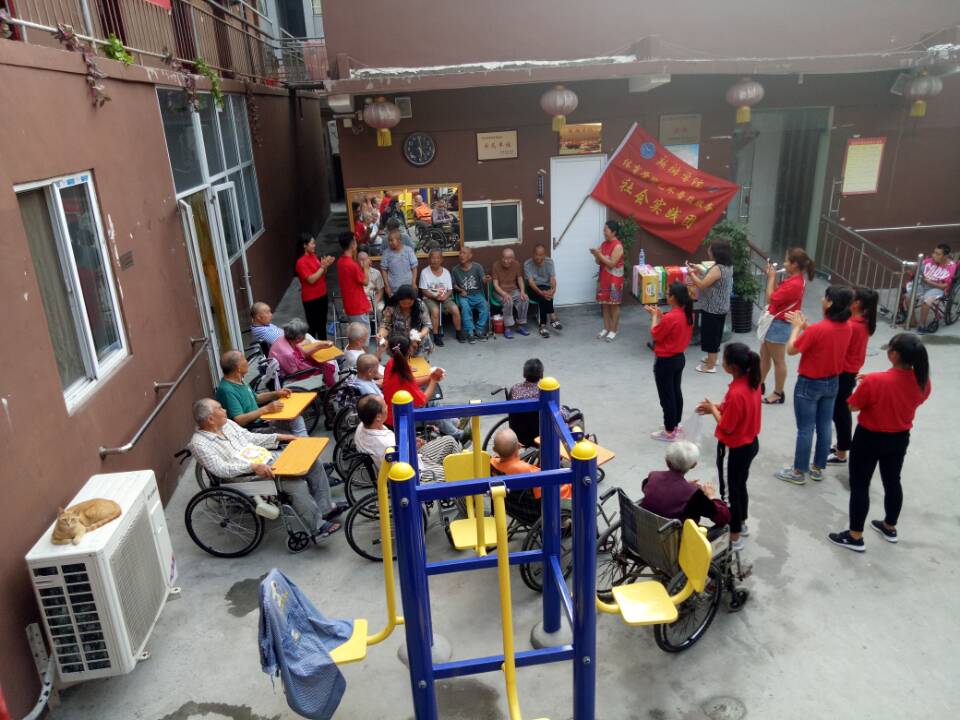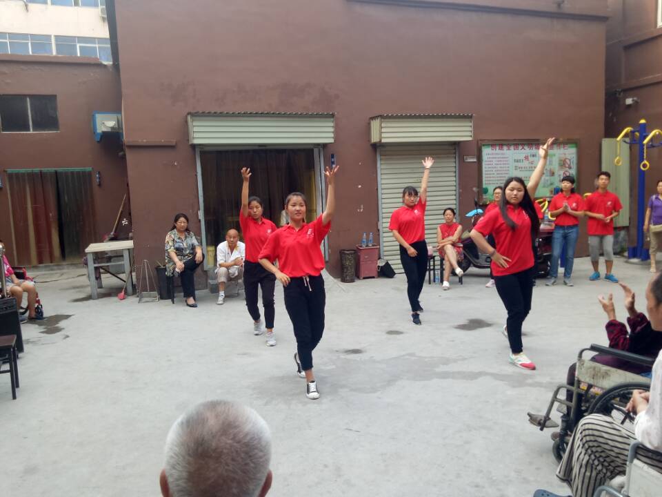 开元集团网站“体育艺术文化普及服务社会实践团”师生顶着烈日骄阳,汗流浃背,来到了位于新乡市卫滨区的好家老年护理院。当闫金兰老师与团员们手提礼物迈进护理院的第一步时,老师与每一位团员不禁心酸与感叹,关爱之情难以抑制。在老师的号召下,团员们赶紧收拾心情,投入到服务孤残、老人的活动中。我们的师生用善意的笑容与关切的话语与孤残老人们很快就融洽的亲如一家,同学们为老人们打扫房间,准备演出场地道具,为老人们准备了各式水果。一切准备就绪,师生同台为老人们带去了许多精彩的表演,唱歌、朗诵、武术、舞蹈等节目,每一位老人都看的哈哈大笑,其中有位老爷爷兴致高涨,也为大家引吭高歌。晚饭时,同学们一勺勺、一口口喂那些不能自理的老人吃饭,像小时候,奶奶给自己喂饭时的样子,护理员的负责人不禁在一旁抹着眼泪。活动时,闫金兰老师根据自己多年的武术研究,为护理院的工作人员讲解了一些养生知识与技法,以便他们在照顾老人时使用。最后,闫老师总结了此次活动的感想与意义,并提出尊老爱幼是中华民族传统美德,是体育精神传承的体现,希望同学们今后要做个善良、勇敢、诚实的人,能够关爱孤残老人,有社会担当,少年强,民族强!