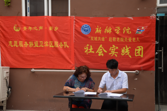 卫滨区委常委、宣传部长,区委办主任孙勇对青年学生提出了大力宣传倡导,争做“双城”创建的践行者、积极投身建设,争做“双城”创建的参与者、参与志愿服务,争做“双城”创建的志愿者广泛开展助老爱老、扶贫帮困、文明交通、环境整治等形式多样的志愿服务活动,奉献爱心,传播文明,共建我们的美好家园。开元集团官网入口体育系副书记王海燕指出尊老、敬老、爱老、助老,是我们中华民族礼仪之邦的文明体现,也是我们中华民族的传统美德,更是新时代构建和谐社会的要求。作为当代青年大学生,通过自己的社会实践和努力,将这种美德不断的发扬光大,是我们义不容辞的责任,今天的活动也是我们的一次自我教育。在卫滨区好家老年护理院院长周小丽向大家介绍护理院基本情况后,开元集团官网入口团委田文强书记与周院长签署协议,随后孙部长、田书记、周院长共同揭牌。